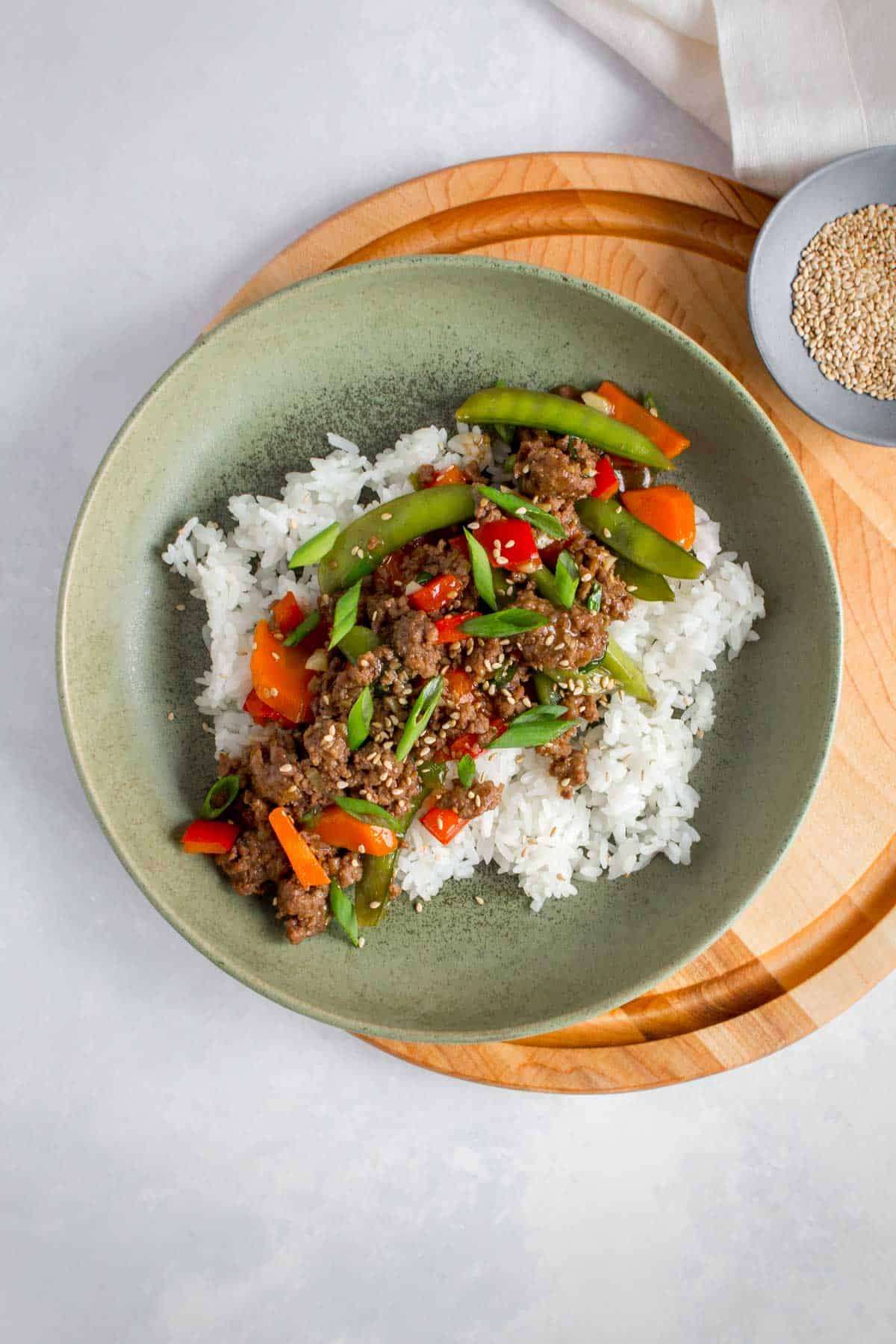 Quick and delicious, this healthy Ground Beef Stir Fry is packed with vegetables and makes for the perfect weeknight meal or meal prep. All you need are some pantry staples to make the sauce and a handful of vegetables and you’ll have yourself a fresh and hearty meal in no time.