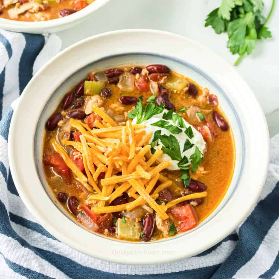 This easy ground turkey chili recipe makes a great weeknight dinner. Packed with savory ground turkey, beans, veggies and tomato in every spoonful, this is a delicious and comforting dinner that cooks in 30 minutes.