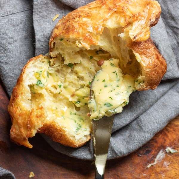 - Once the popovers are done remove them from the oven, cut a slit in the bottom of each popover to release the steam, and place them in a bread basket. Serve immediately.