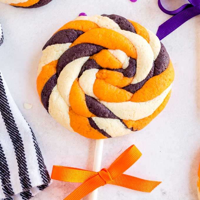 These Lollipop Cookies are sure to put a smile on your face! These easy sugar cookies are all decked out Halloween style and ready to be devoured or given away as a fun homemade Halloween treat!