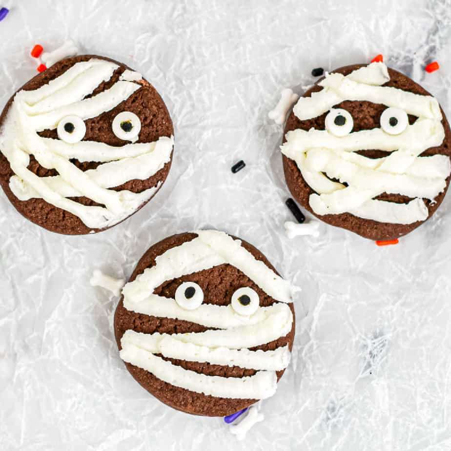 These chocolate Halloween Mini Mummy Cookies are the perfect spooky addition to your Halloween celebrations. These delicious little cookies make plenty to share, and are so fun!