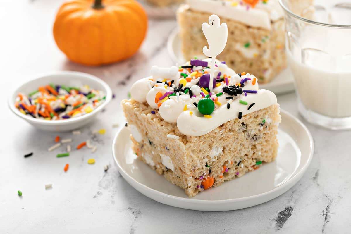 These Halloween Rice Krispie Treats are a simple way to celebrate Halloween! Load them up with festive sprinkles or add in some of your favorite candies.