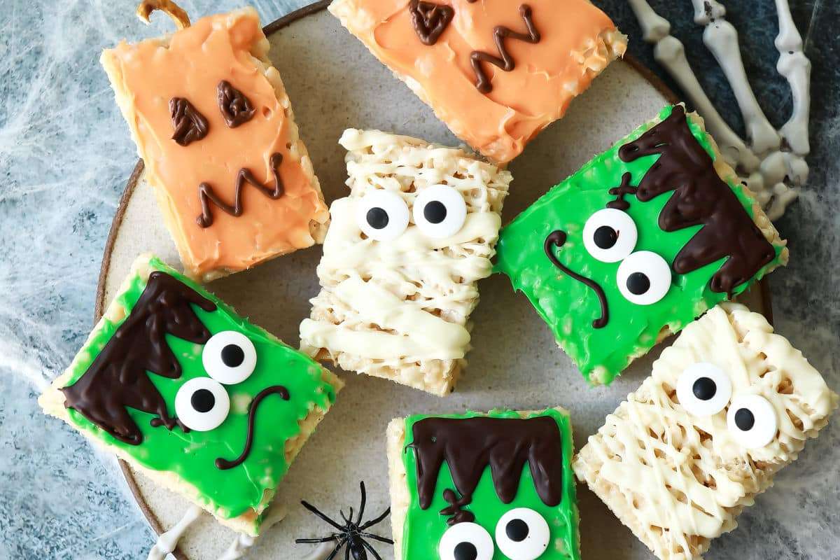 These festive Halloween Rice Krispie Treats are perfect for parties, treat bags, and after-school snacking. Start with a basic recipe and customize them with frosting and candy to create your favorite characters.