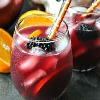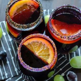 - Fruit: you can use any type of fruit your want for this sangria, the more fruit types the better (this applies to only Halloween sangria, not regular sangria, I would keep the orange, lemon, and apple that are a part of the traditional Sangria), dark or red-colored fruit are preferred, so you could also add black grapes, blackberries, black or red currants.