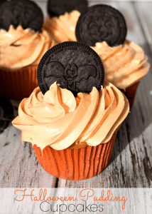 - Spoon Chocolate Snack Pack Pudding into the center of each cupcake.