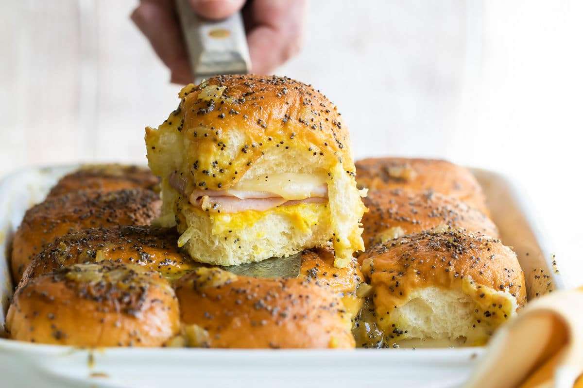 - Make ahead: Feel free to assemble and brush the sandwiches with poppy seed butter (complete through step 5), then cover the pan and refrigerate for up to 1 day.