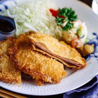 - Arrange the ham katsu with garnish on a serving plate. Serve with homemade tonkatsu sauce. Share and enjoy!