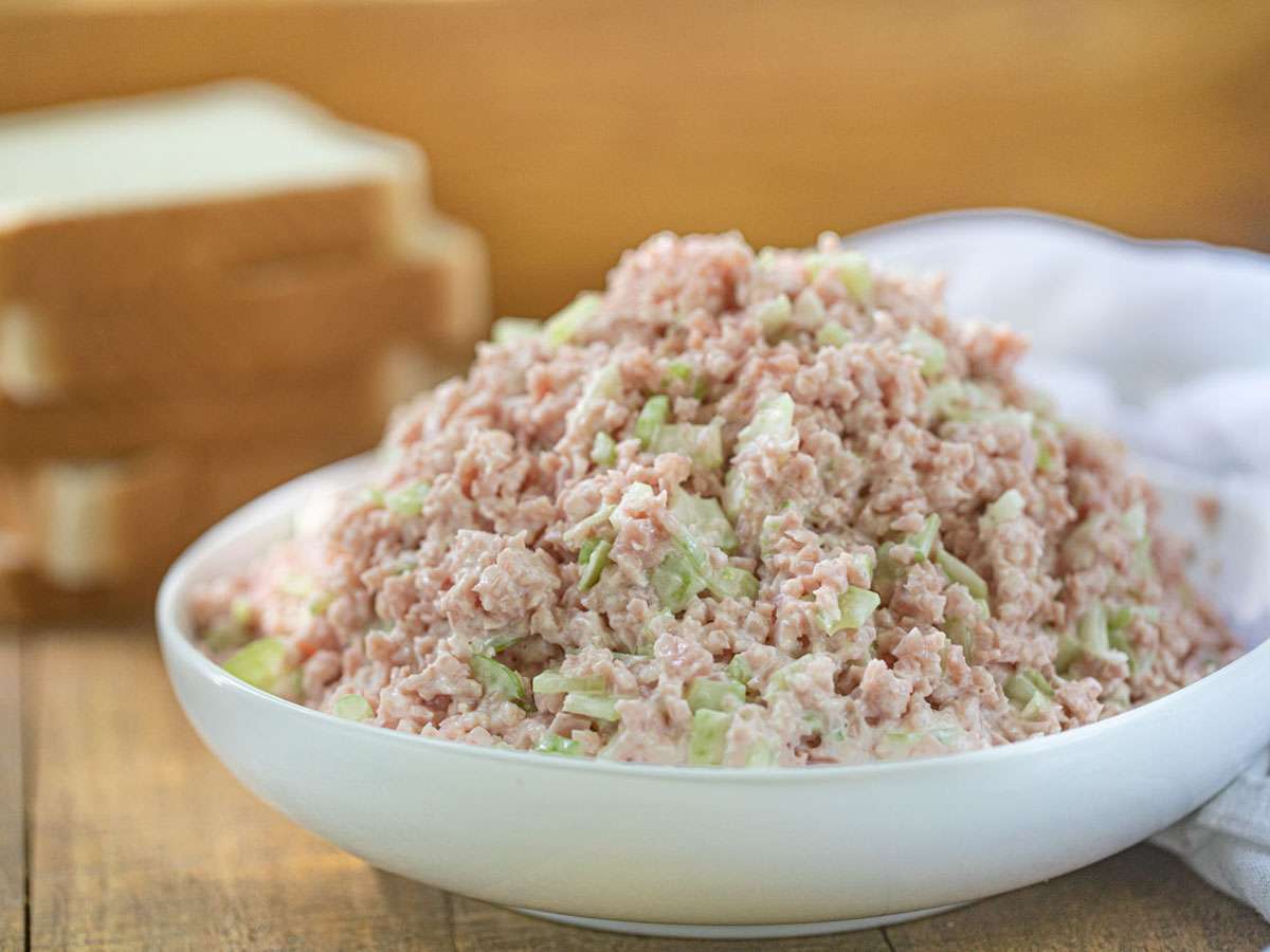 Ham Salad is a yummy appetizer or sandwich filling (perfect for leftovers!) made with diced ham, relish, celery, and mayonnaise in 5 minutes!