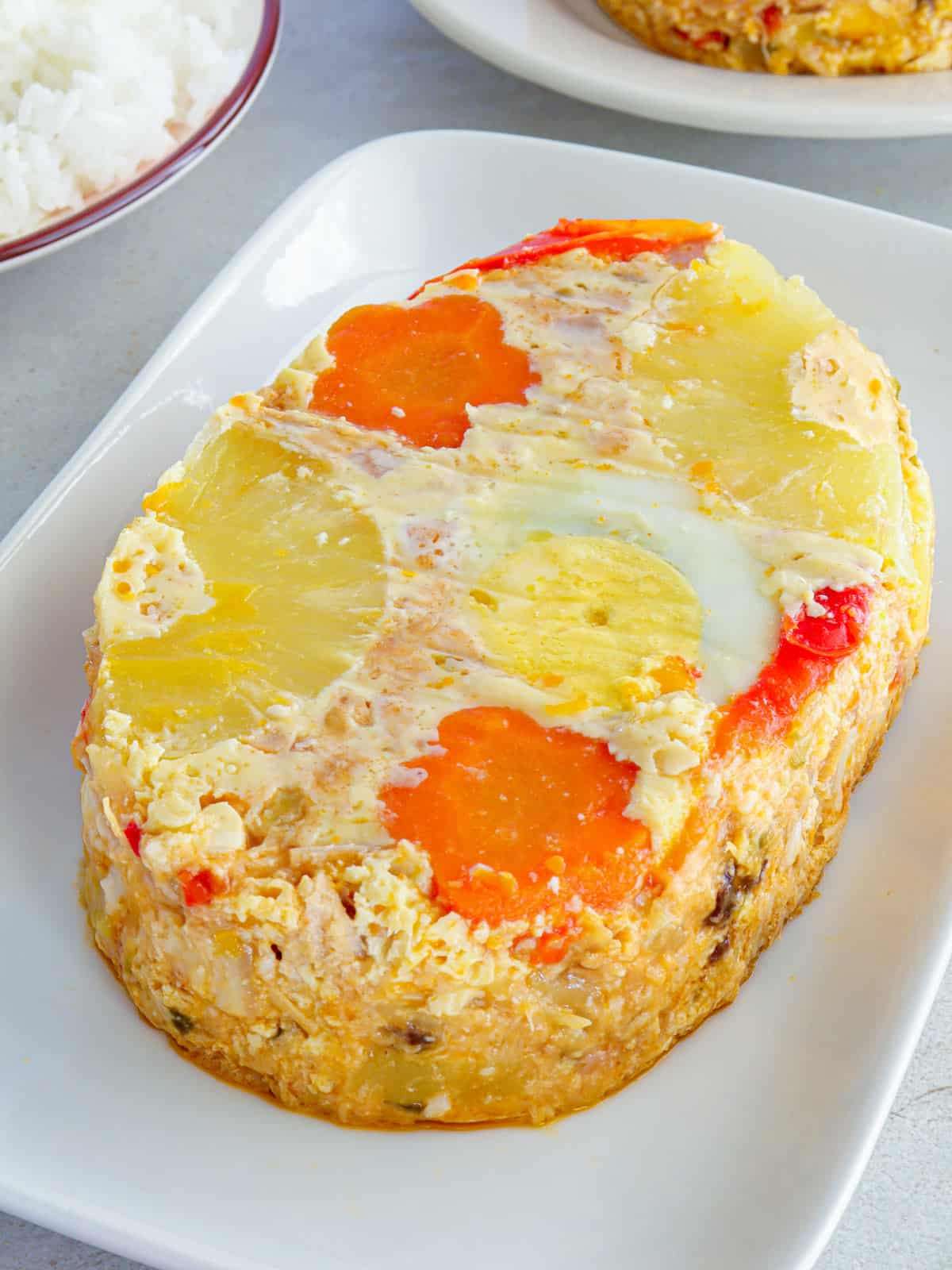 Lucban Hardinera is a steamed meatloaf made with a delicious mix of braised pork, luncheon meat, ketchup, sweet pickles, bell peppers, cheese, raisins, and pineapple tidbits. It's the perfect balance of savory and sweet that will have your guests coming back for more!
