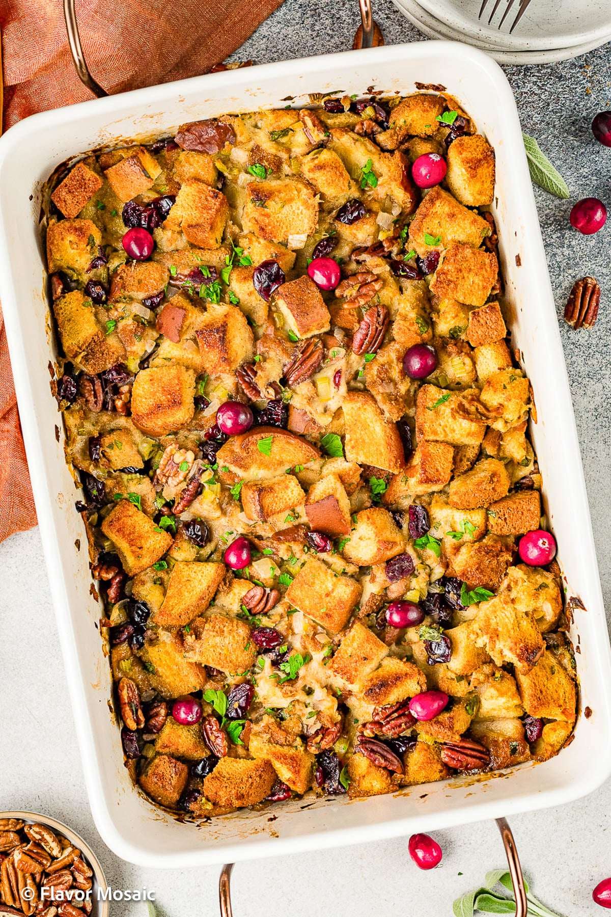 - Remove from the oven and let the stuffing sit for a few minutes before serving. Garnish with extra parsley if desired.