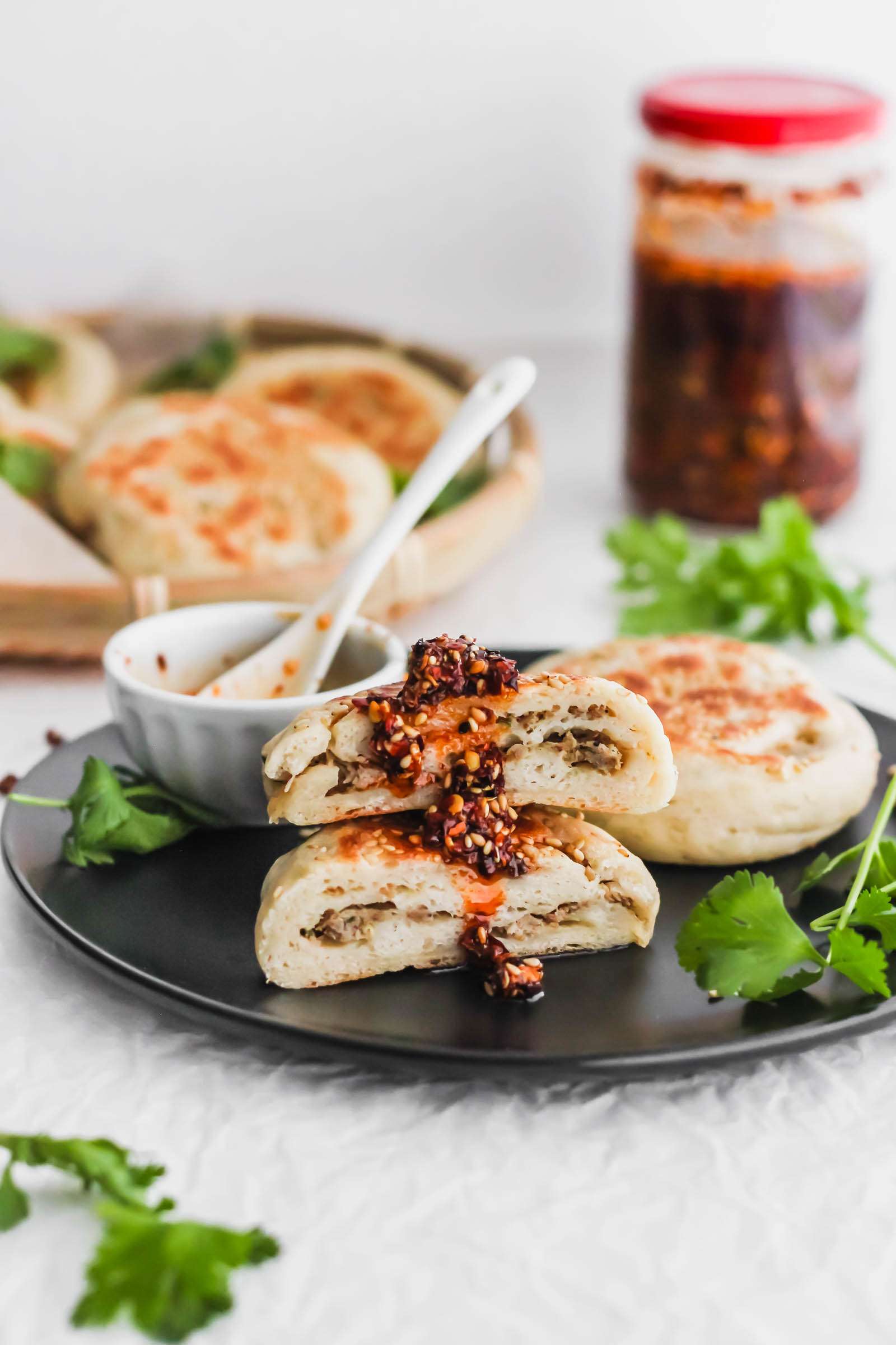 A healthier Sichuan-style guo kui flatbread made by pan-frying instead of deep frying a dough filled with savoury, seasoned ground pork.