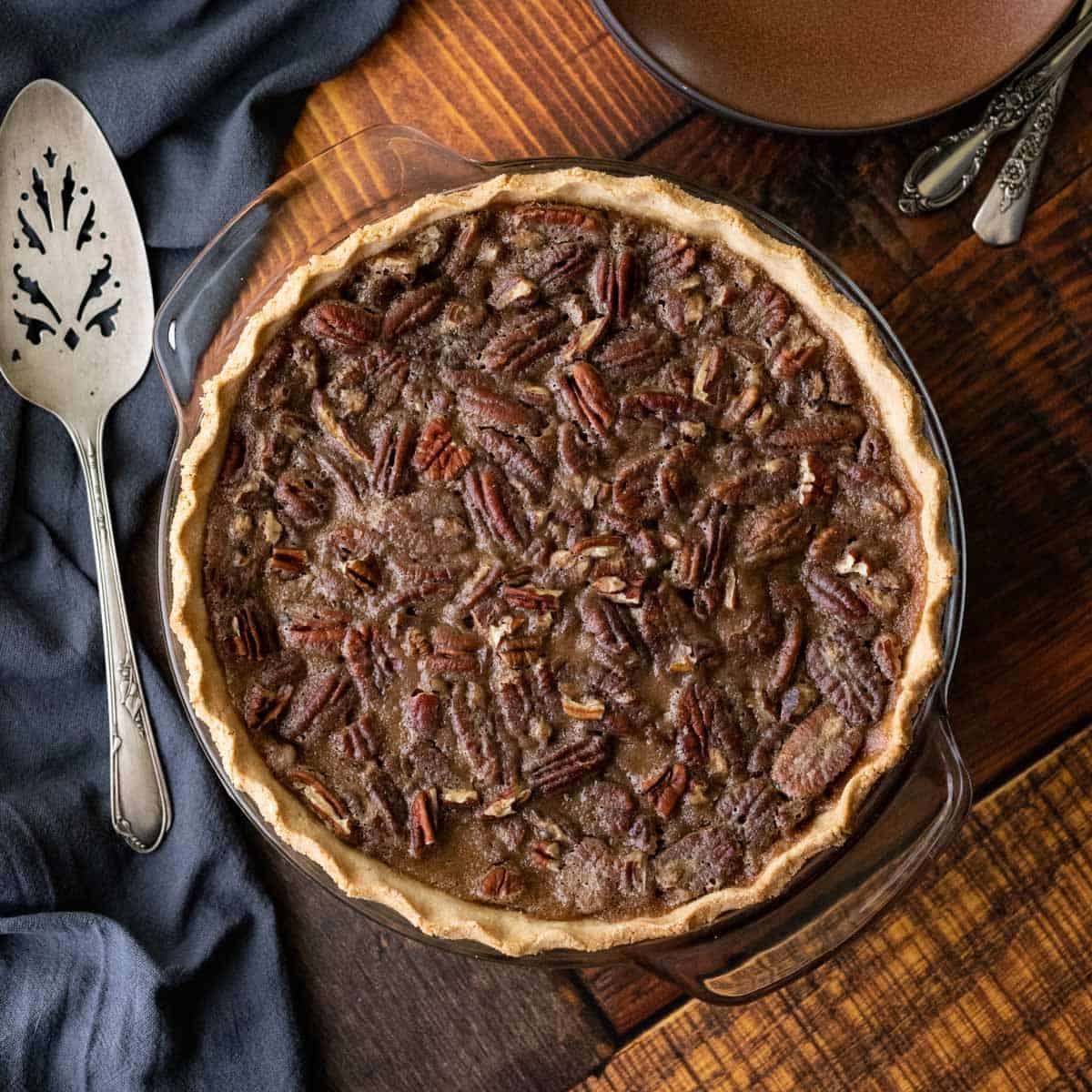 - 1 ½ cups raw pecan halves reduce for a lighter pie