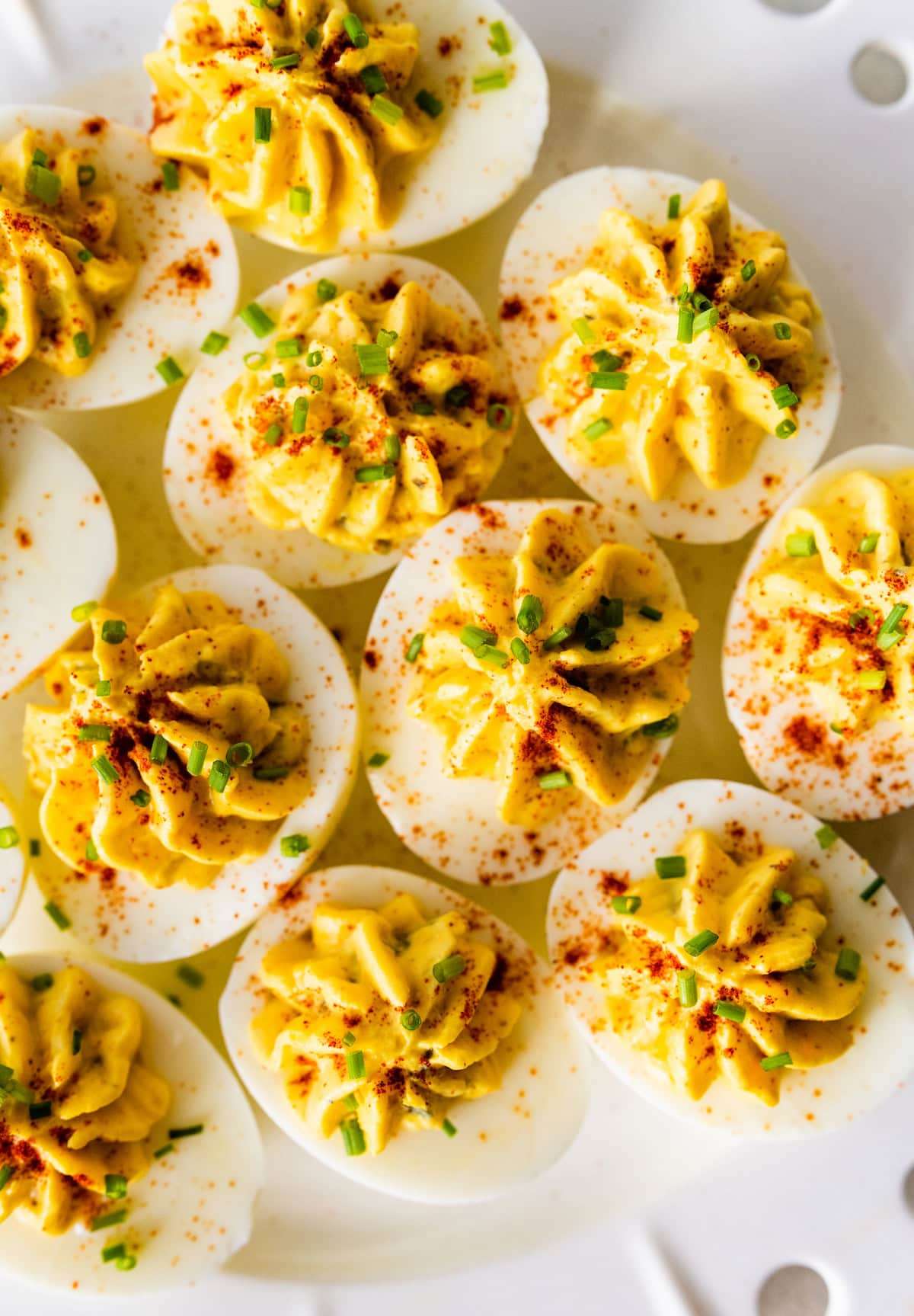 Made with protein-rich Greek yogurt instead of mayo these healthy deviled eggs are lighter in calories and fat, but still absolutely delicious. Perfect for parties or snacking.