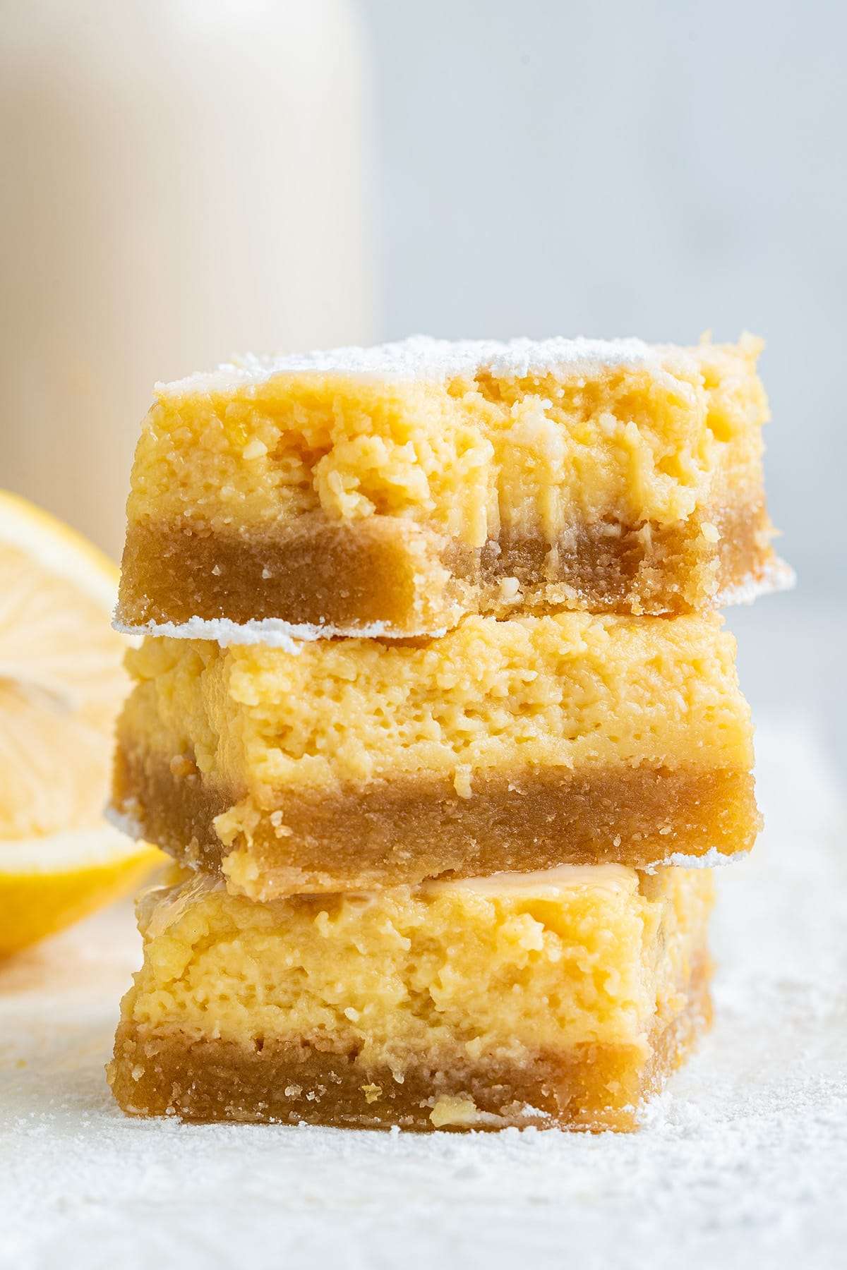 These healthy lemon bars have an almond flour shortbread crust and a creamy, perfectly tart lemon filling. They're gluten-free, dairy-free, naturally sweetened and made with only 6 simple ingredients!