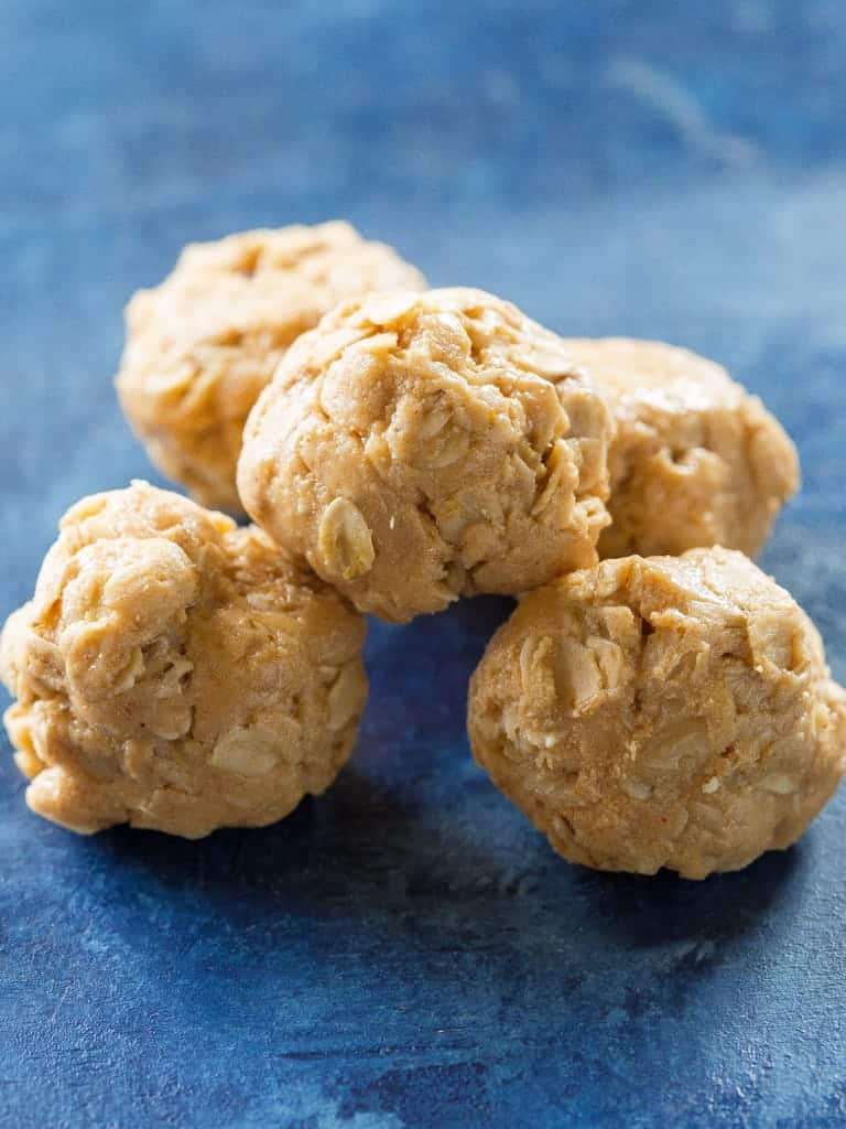 - Combine all ingredients in a bowl; mix well. Using your hands, roll the dough into balls about the size of large gumballs. Place on a cookie sheet lined with wax paper, and refrigerate until set. Makes about 18 balls.