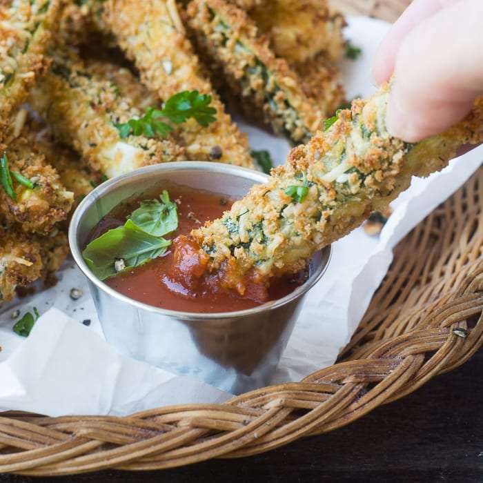 These Healthy Zucchini Fries are just as yummy and crisp as the restaurant version, minus all the calories because they're baked, not fried.