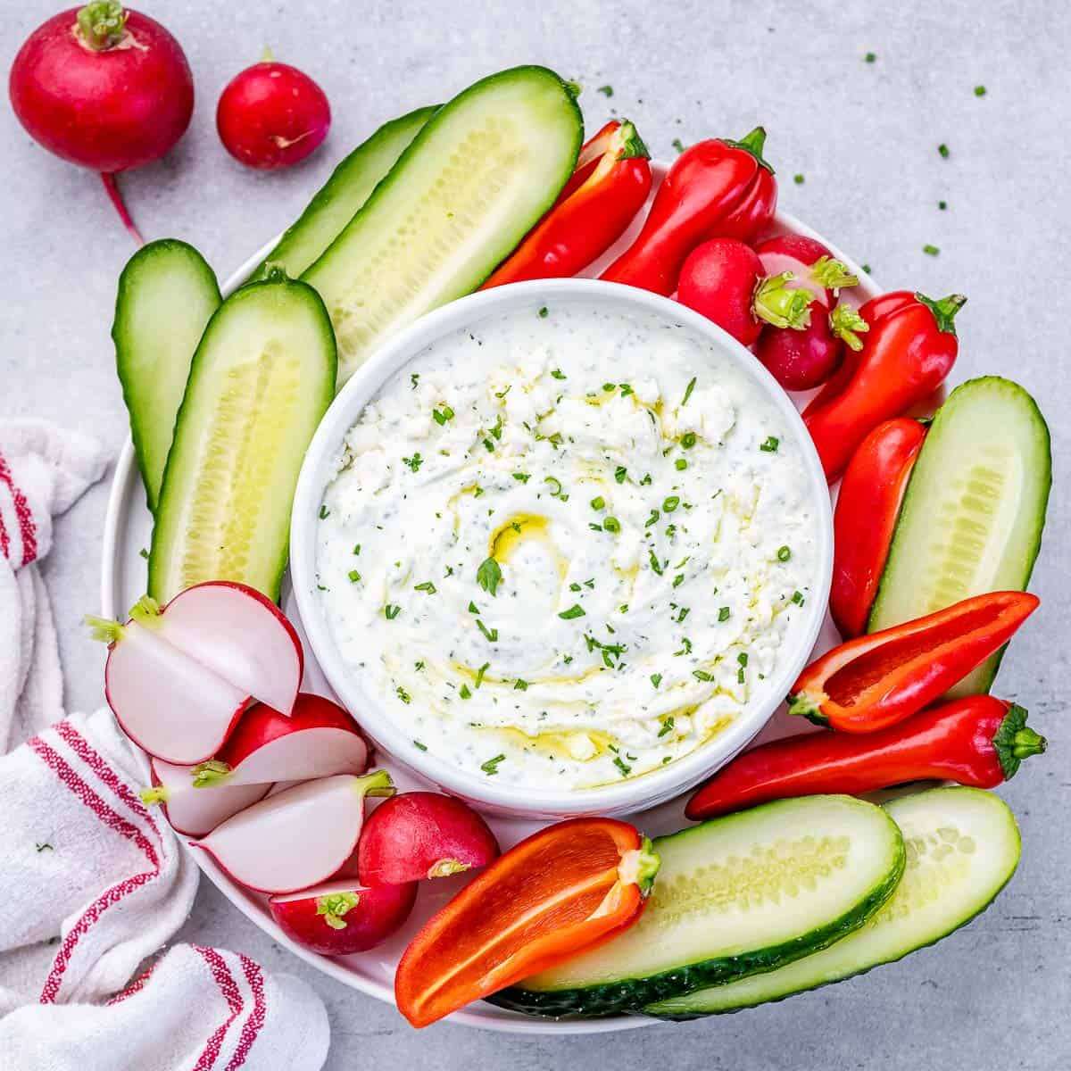 Creamy Herbed Whipped Feta Dip is loaded with flavor and is such an easy appetizer to mix! The combination of feta cheese, Greek yogurt, and fresh herbs is the perfect companion for fresh-cut veggies, pita bread, or crackers.