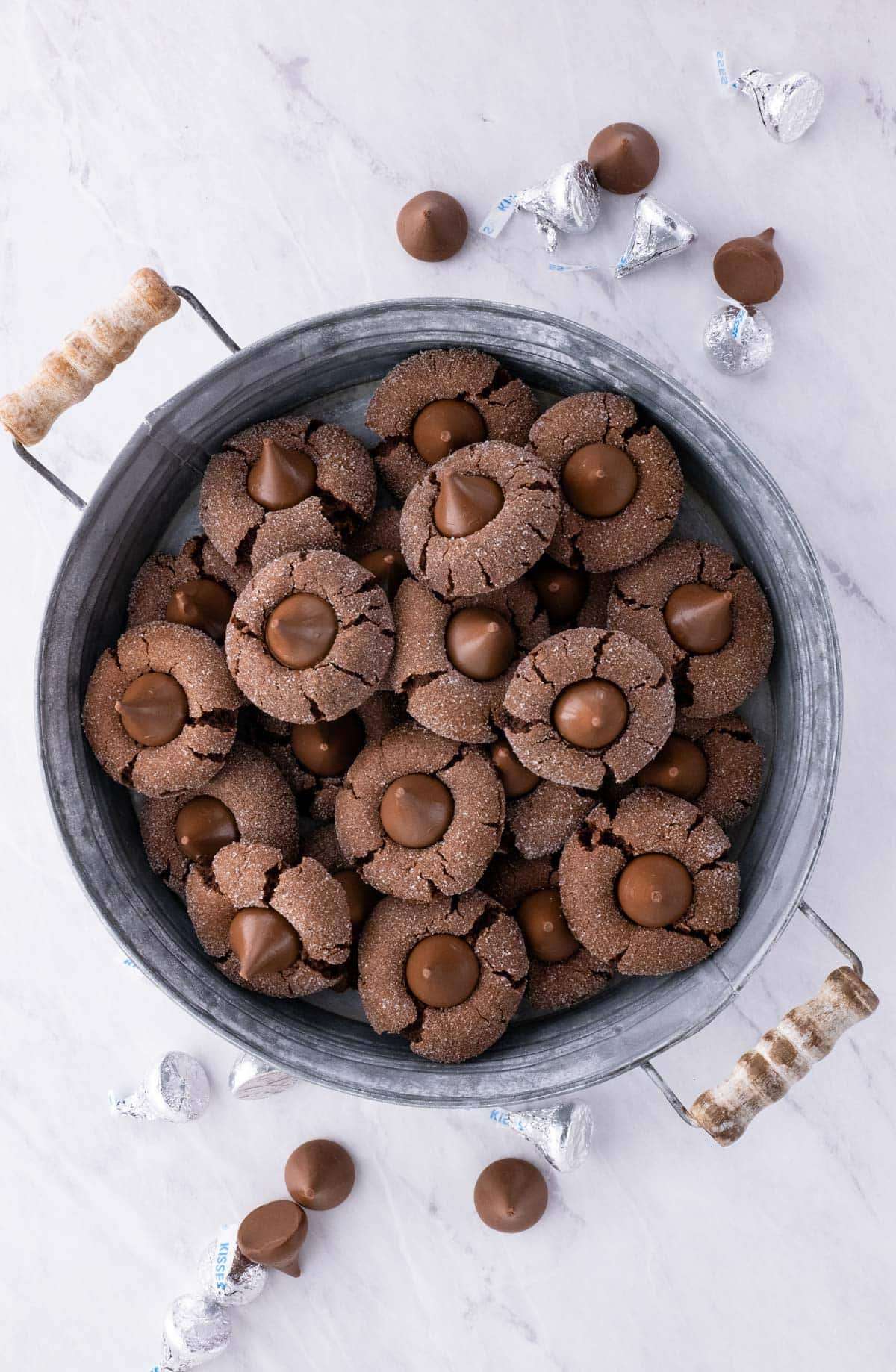 Hershey's Kiss Cookies are soft and chewy chocolate cookies topped with Hershey's Kisses, ready in under 30 minutes! Perfect for the holidays!