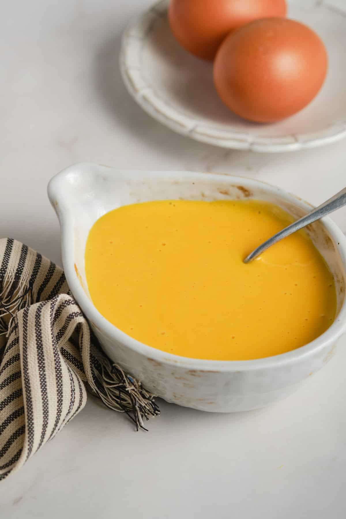 - Transfer the hollandaise sauce to a bowl and serve warm.