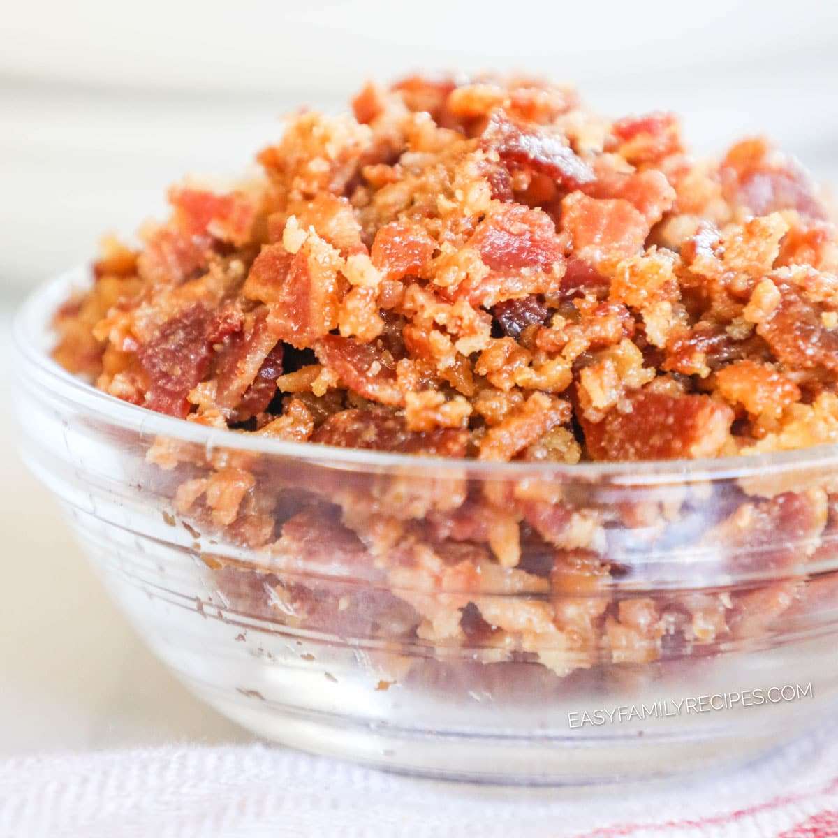 These homemade bacon bits are amazingly delicious and so easy to make. Use them to top casseroles, salads, baked potatoes, and more!
