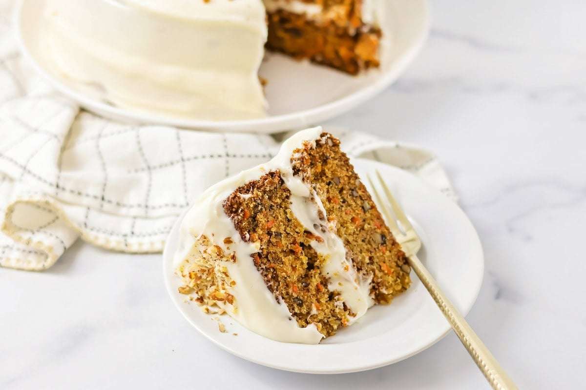 Our stunning homemade carrot cake is tender and delicious. Paired with cream cheese frosting, it's a beloved classic!
