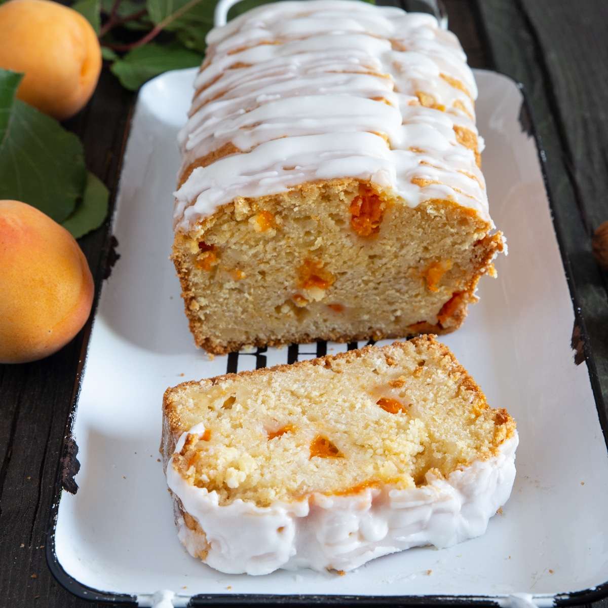 Apricot Bread made from scratch with fresh apricots and drizzled with glaze. This is a soft, sweet, quick bread recipe that is great for breakfast or as an afternoon snack cake with coffee. Easy to make and so delicious!