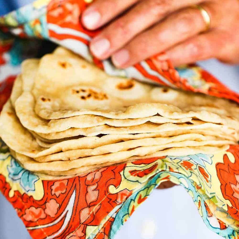 - Do not over process, or over knead, or roll the dough. Over handling the dough will result in a chewier tortilla. Be sure to let the balls of dough rest for 15 minutes under a damp kitchen towel before rolling them out.