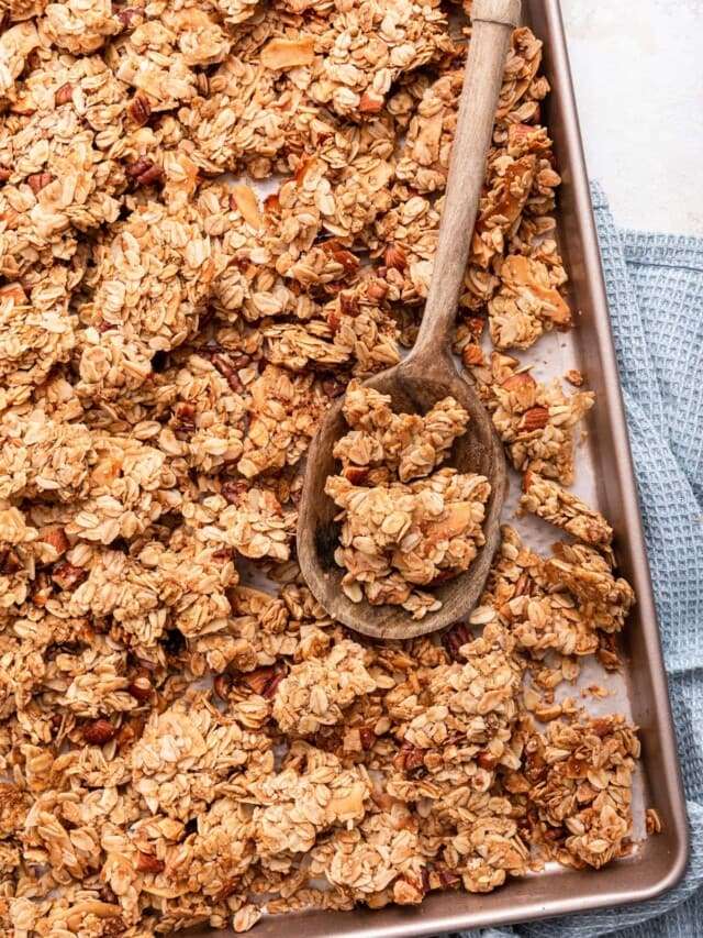 The best homemade granola recipe resulting in perfectly crunchy and clumpy granola. It's easy to make with simple ingredients, naturally sweetened and absolutely delicious!