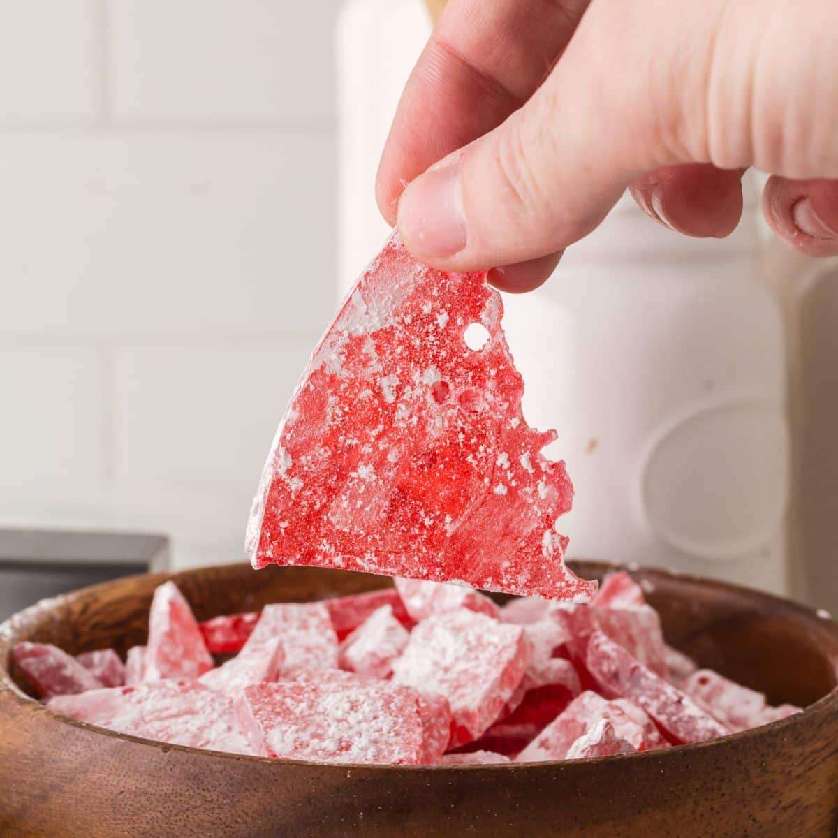 - Let the candy sit so it can harden. Break into bite-sized pieces and toss with powdered sugar.