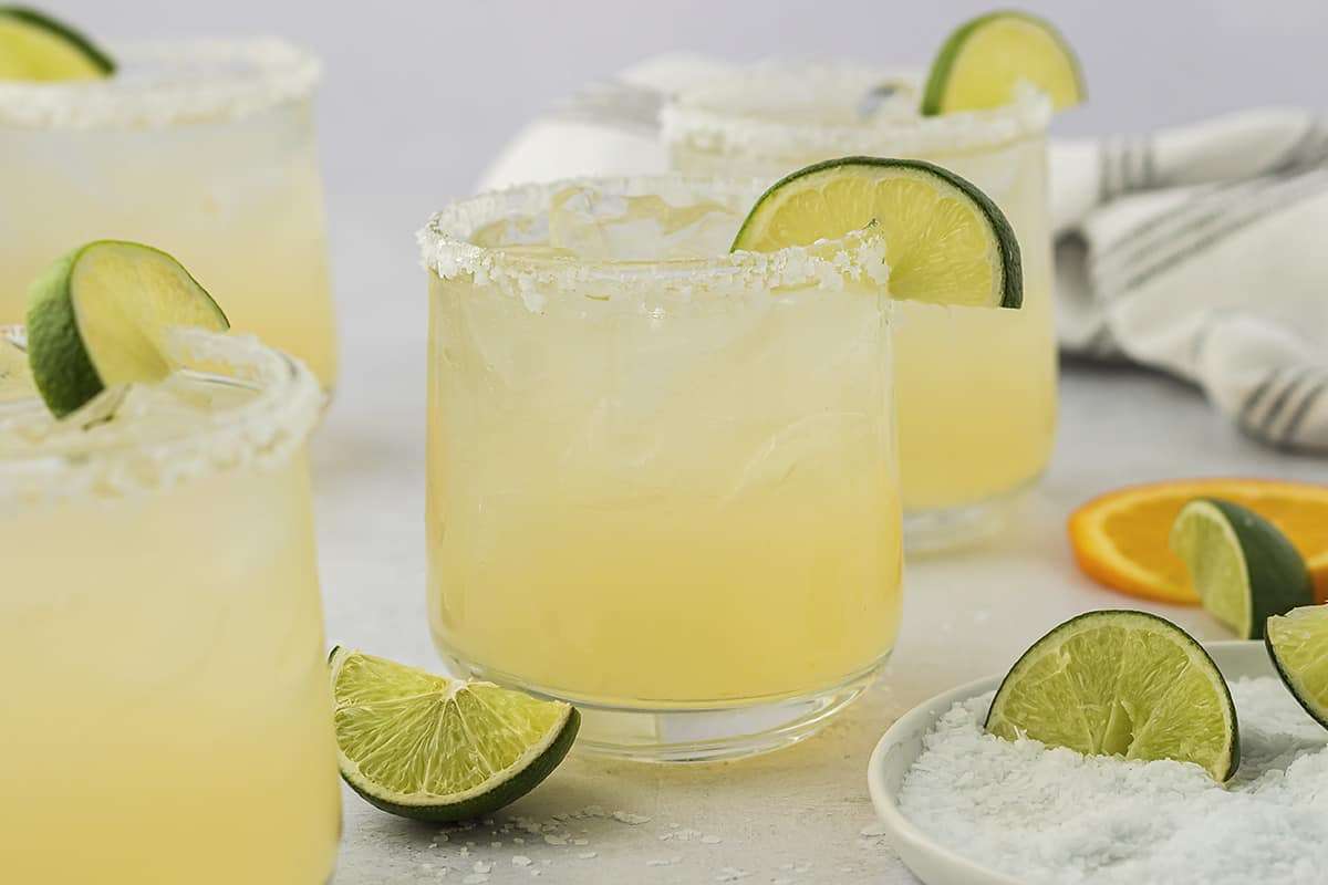 - Add ice to the glasses, fill with the margarita mixture, and enjoy!
