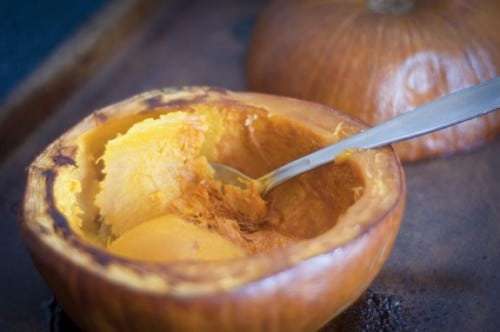 - Remove the pumpkin from the oven and allow it to cool till it's just warm.