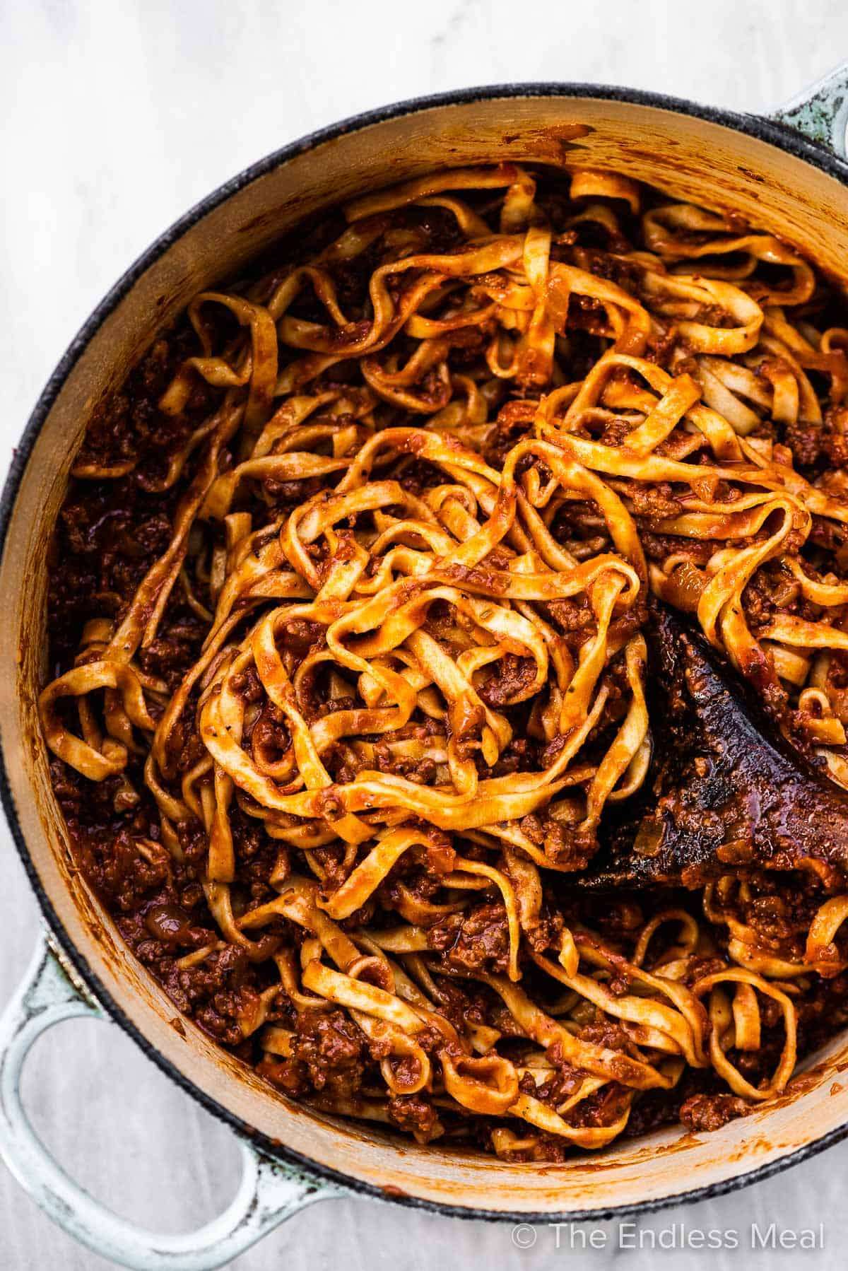 - Add the tomato paste to the pot and let it cook until it darkens and becomes sweet smelling, about 3-4 minutes. Add the ground beef and cook until it is no longer pink.