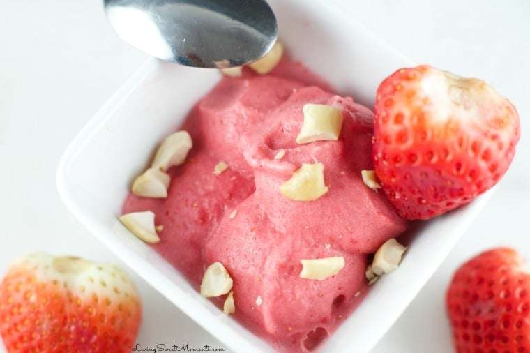 - Place the yogurt, frozen strawberries, and sweetener in a high-powered blender or a food processor. Pulse until combined