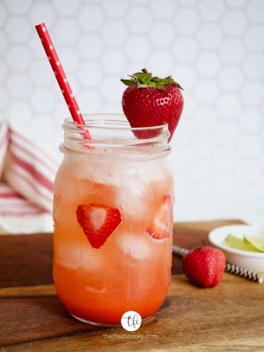 - Garnish with fresh strawberry wheel of lime or a little mint