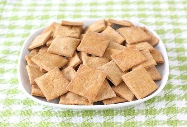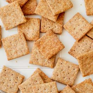 - 5. Bake the crackers, one sheet at a time, until crisp and browned, about 5-10 minutes. Check the crackers at 5 minutes, and if some of the thinner ones are browning too quickly, remove them from the oven. The crackers can burn quickly so you want to keep a close eye on them. Remove crackers from oven and place on a wire rack to cool. Store the crackers in an airtight container.