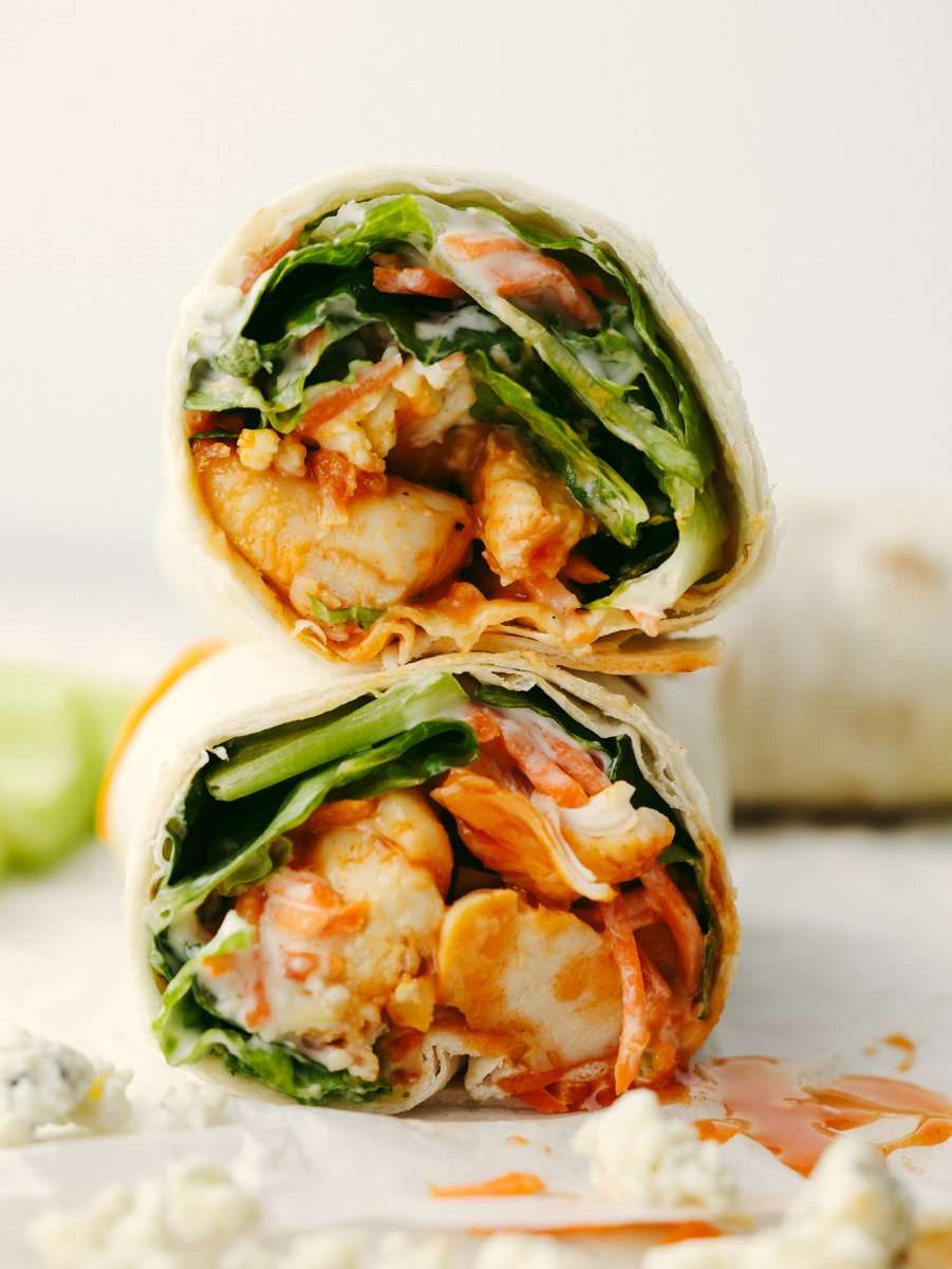 These honey buffalo chicken wraps are so healthy and delicious! They're loaded with a sweet buffalo sauce, ranch, bleu cheese, and all of your favorite veggies for a lunch you'll love!