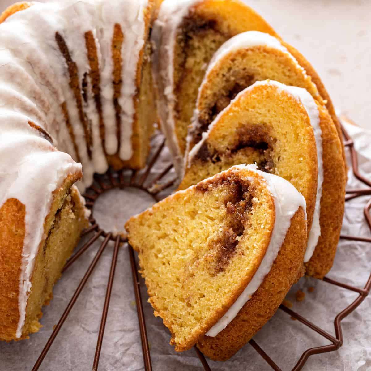 A yellow cake mix gets transformed with a few ingredients and a brown-sugar-and-spice swirl to make this honey bun cake anything but ordinary. The vanilla glaze simply takes this old-fashioned cake over the top.