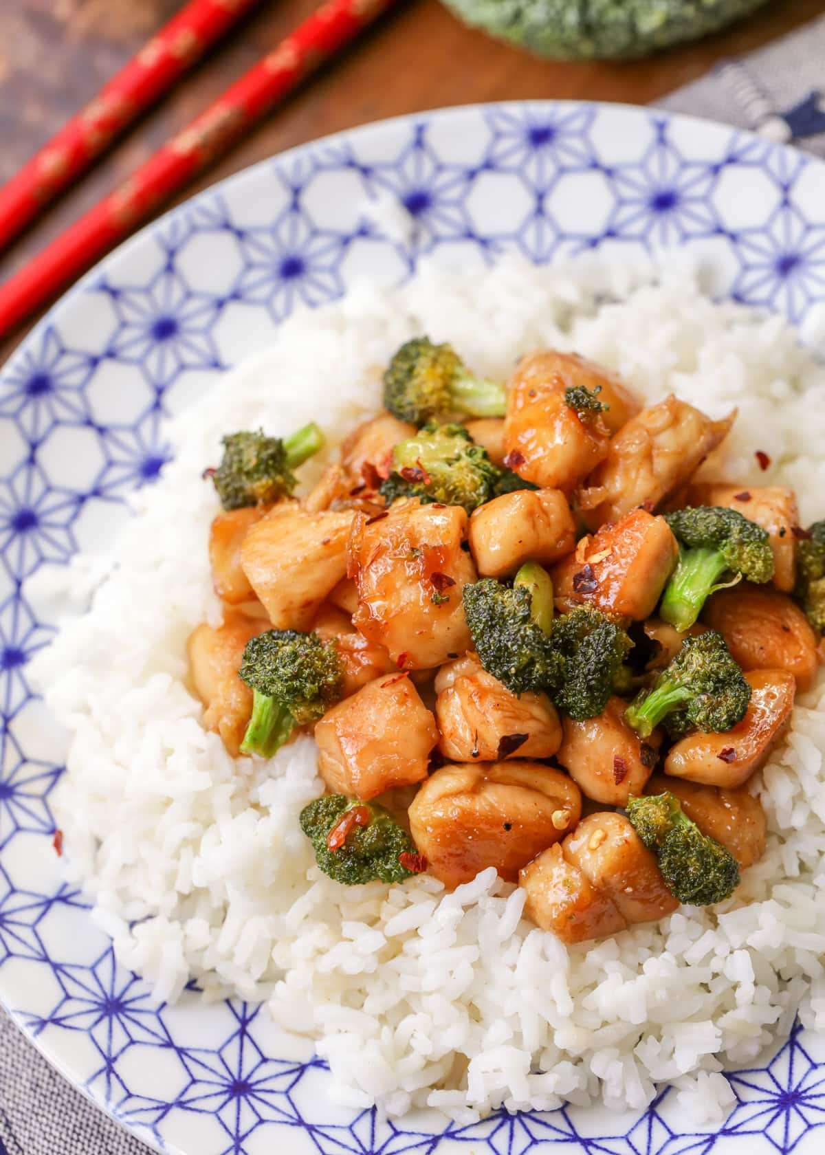 - Cook chicken in hot oil and stir until lightly brown, about 5 minutes. Pour in honey mixture and chopped broccoli and continue to cook and stir until chicken is no longer pink and sauce has thickened. Serve over white or brown rice and ENJOY!