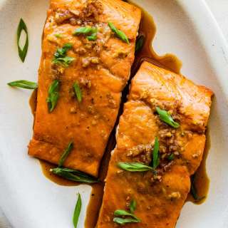 This easy honey glazed salmon comes together in about 15 minutes for a quick and flavorful meal! It's tender, flaky and coated in a delicious honey, garlic, tamari glaze.