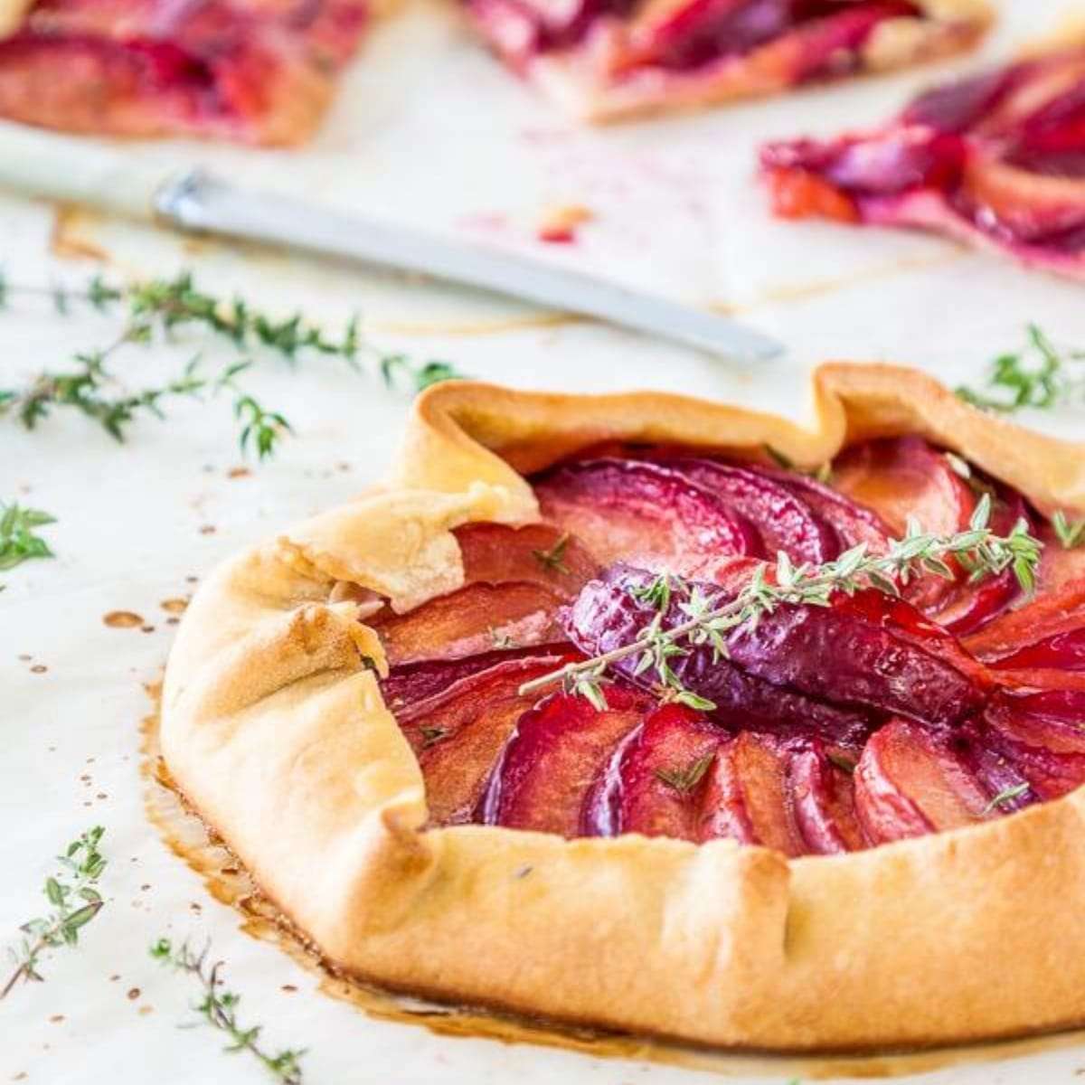 Honey, thyme and plum crostata