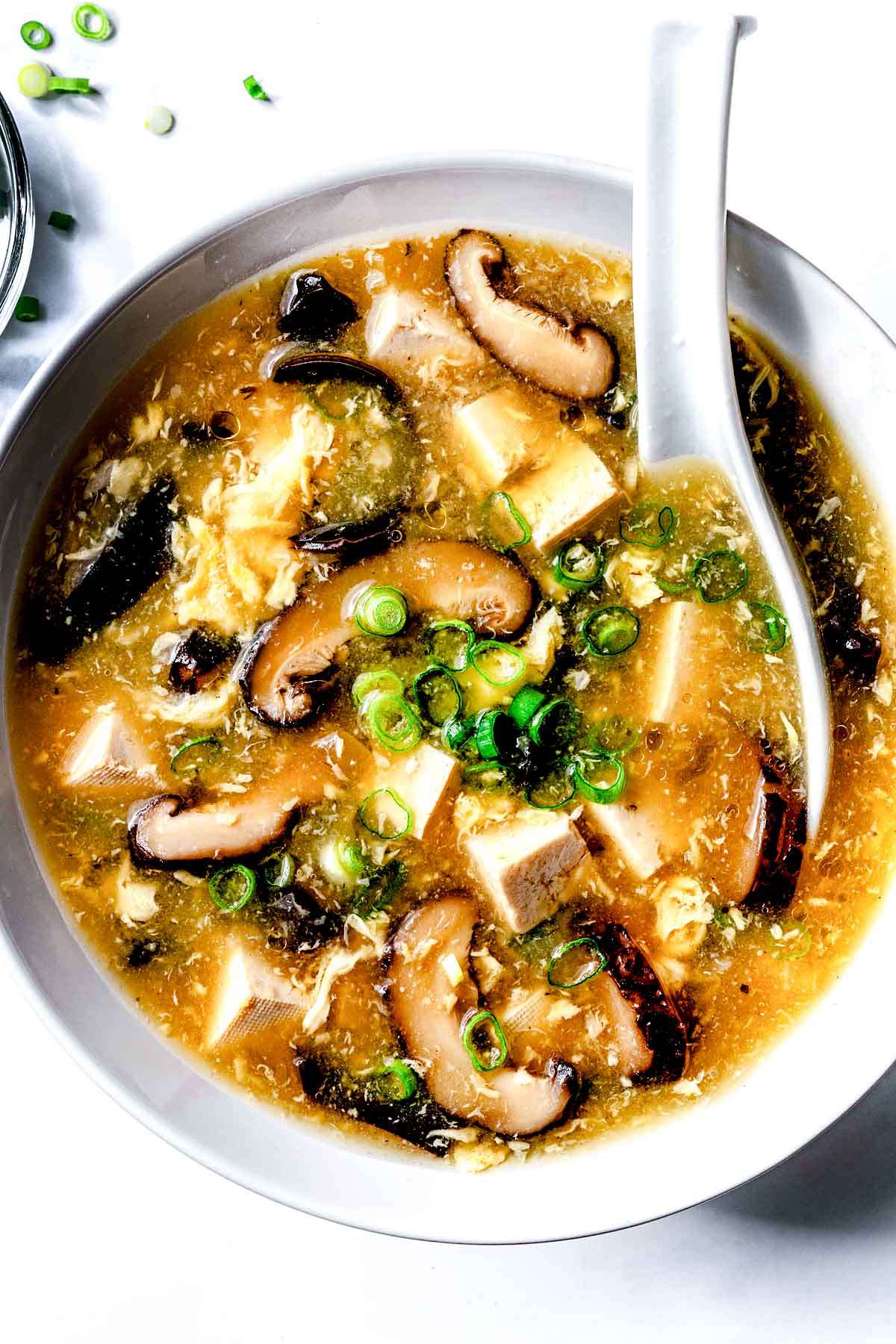 Addictively slurpable hot and sour soup is made with two types of mushrooms, firm tofu, and beaten egg. It's tangy, spicy, comforting, and — best of all — insanely easy to prepare.