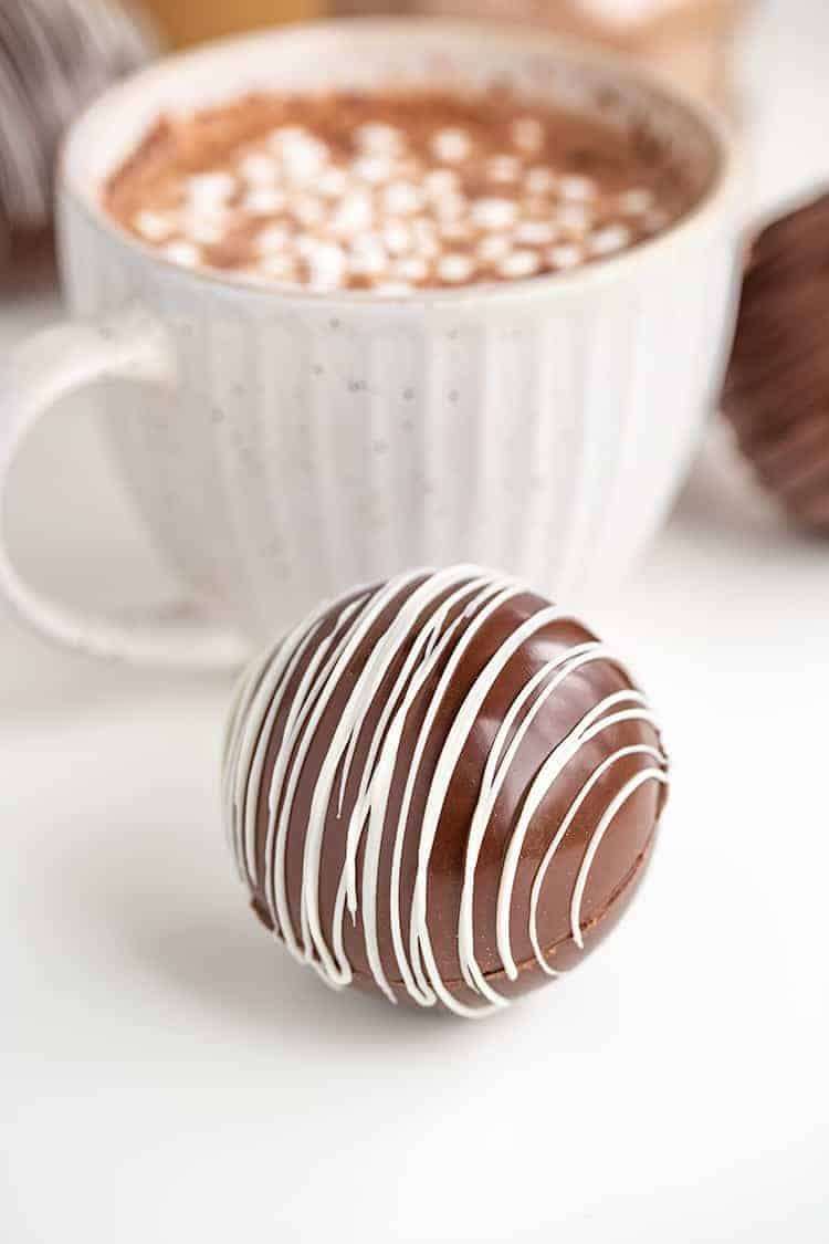 These Hot Chocolate Bombs have a thick, chocolate shell with a hot cocoa mix and marshmallows packed inside just waiting for some hot milk to be poured on top of it.