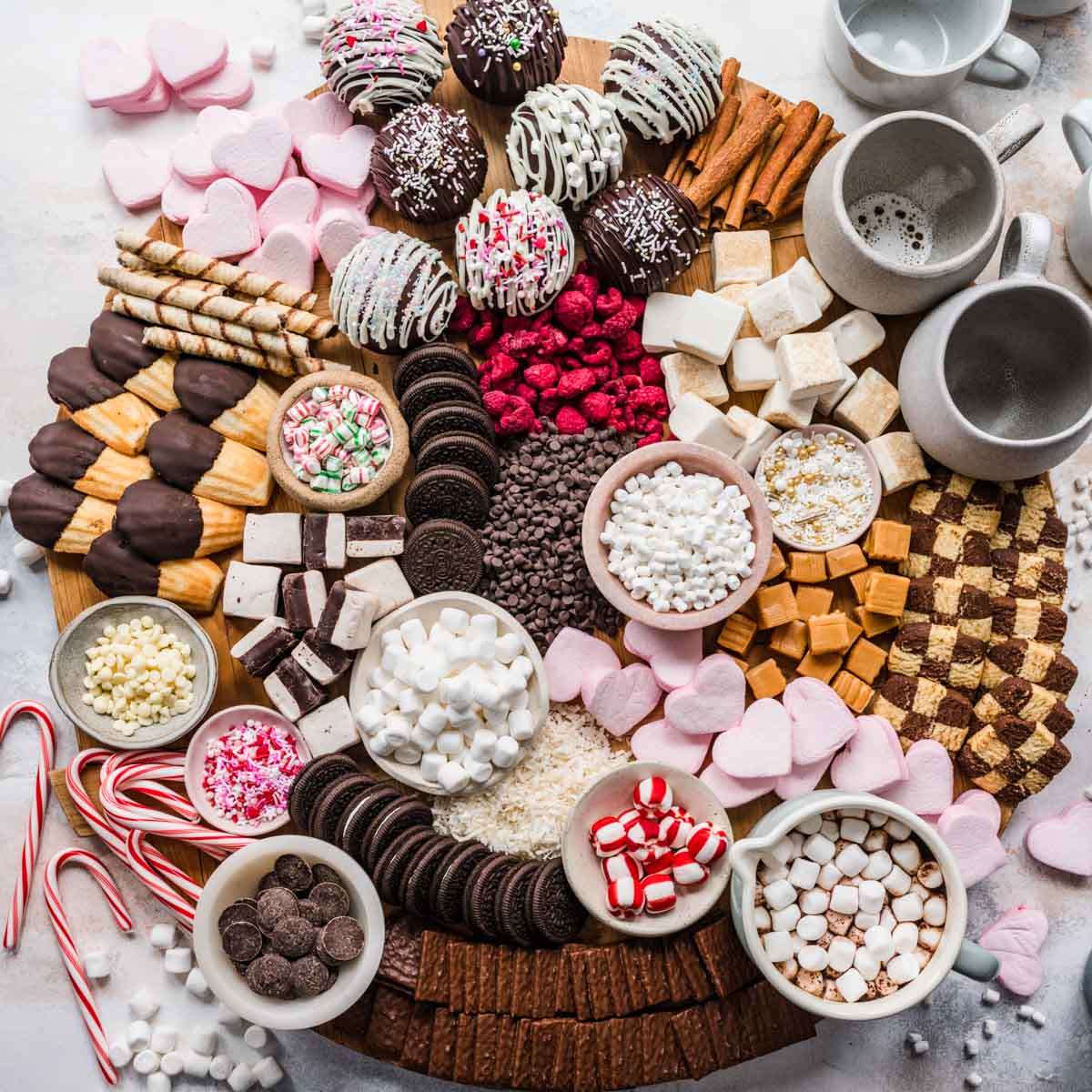 A Hot Chocolate Charcuterie Board makes it easy for your holiday guests to make their own rich and delicious drink recipe.