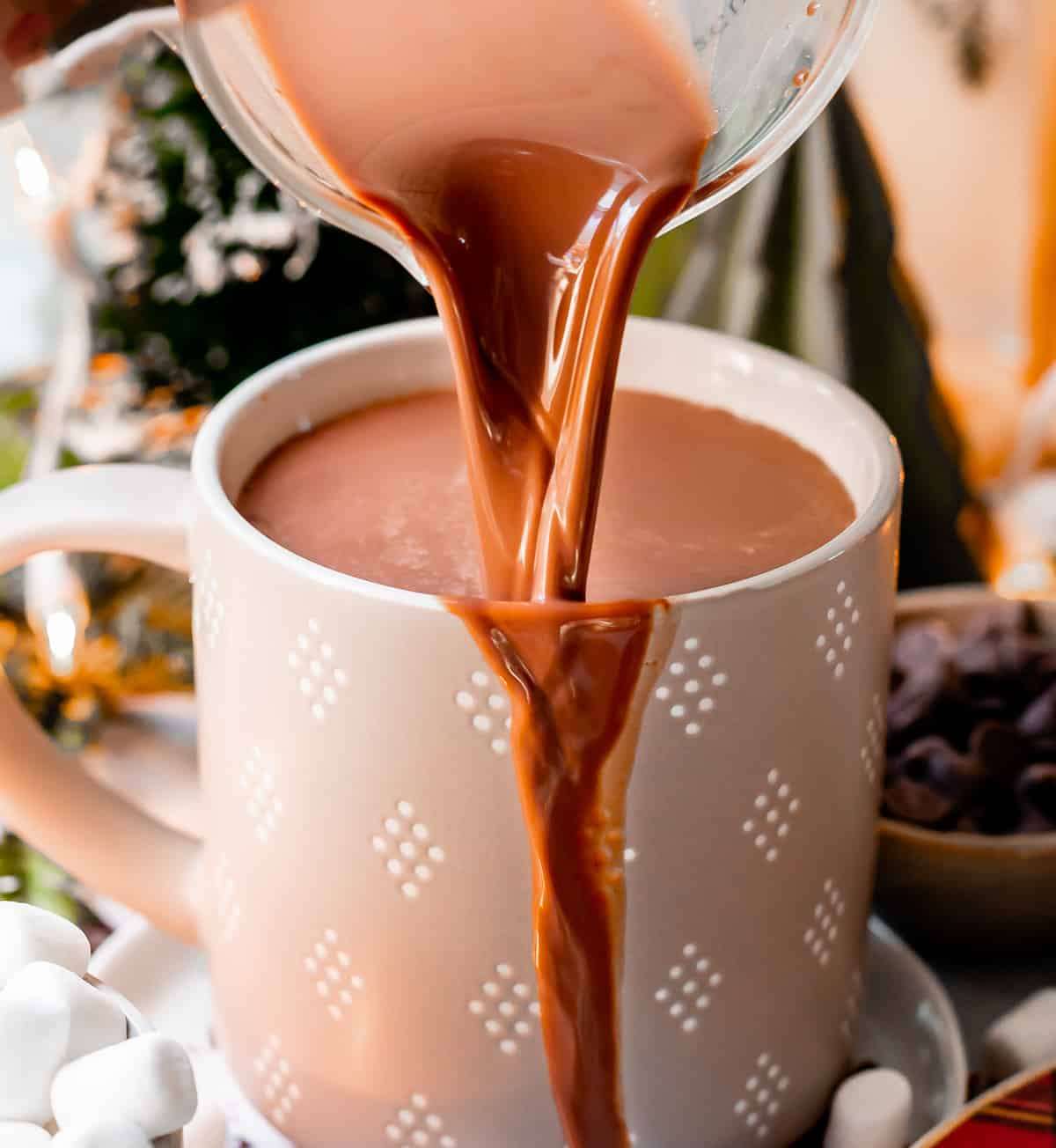 - Storing hot chocolate: My favorite way to store is in glass mason jars with a lid. The hot chocolate will keep in the fridge for about 2-3 days. To reheat, simply shake the jar, add the contents to a sauce pan, and heat over medium heat til warmed through. You can warm in the microwave, but I recommend warming at 50% power and stirring every 30 seconds or so until warm, that way it doesn’t separate or scald.