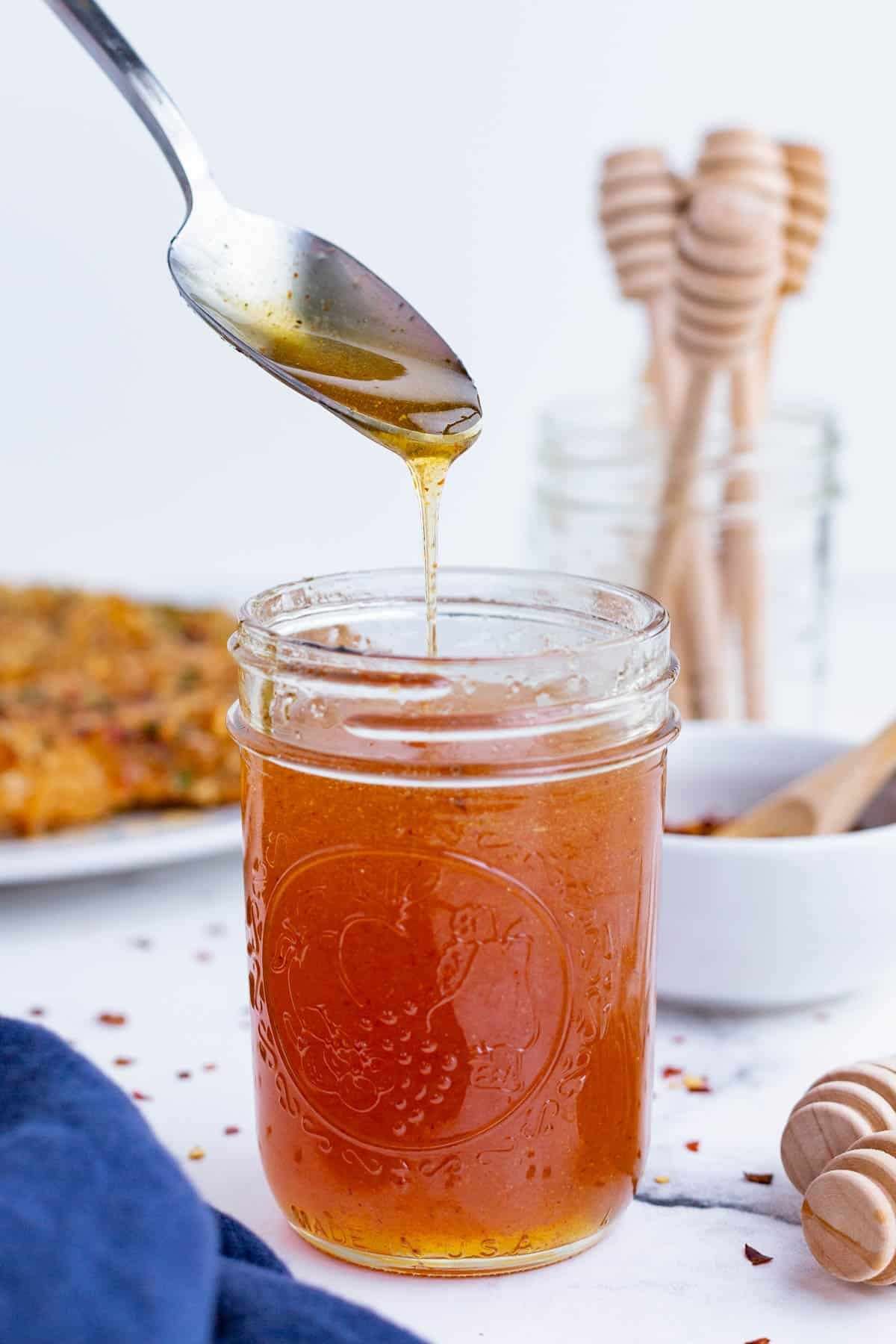 Hot honey is a sweet and spicy condiment that's made with 4 ingredients and takes less than 10 minutes to make at home!