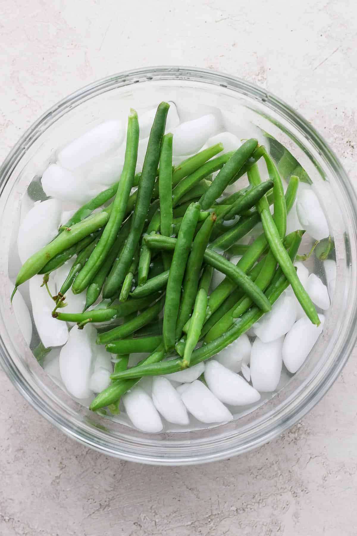 - Immediately transfer the vegetables into the ice water bath to stop the cooking.