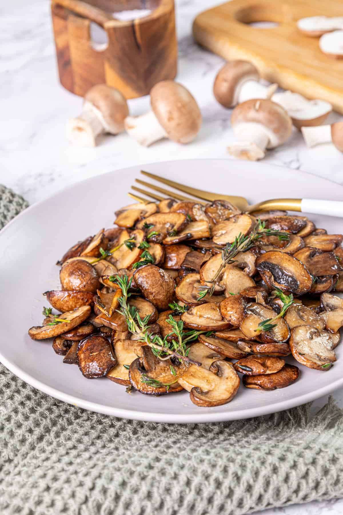- Once dry, allow mushrooms to brown to your preference, then reduce heat to low and add butter, thyme, and optional salt.