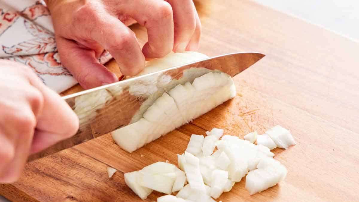 Learn How To Cut An Onion with this simple tutorial! Chopping, slicing, or dicing an onion without crying is quick and easy.