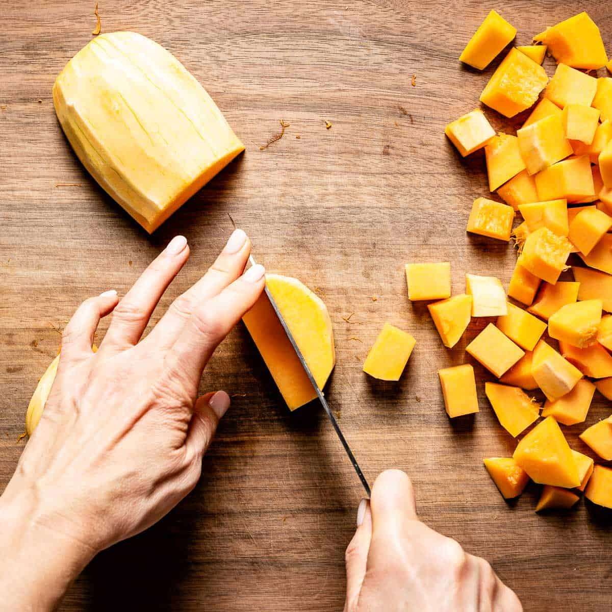 Learn how to prepare, peel and cut butternut squash easily and safely with step-by-step instructions. Below you will find instructions on how to cube butternut squash and how to halve butternut squash.