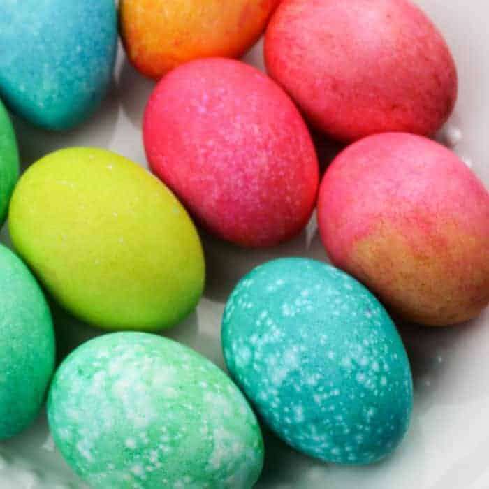 Dye your Easter Eggs with rice and food coloring and you may never color them another way again! These easy and fun hardboiled eggs come out bright, colorful and speckled!
